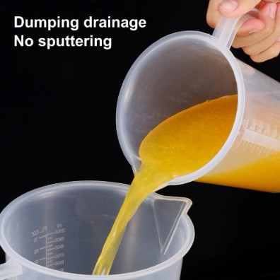 Склянка мірна на 2000 мл із пластику з носиком забезпечує зручність під час переливу рідини завдяки своєму спеціальному дизайну.