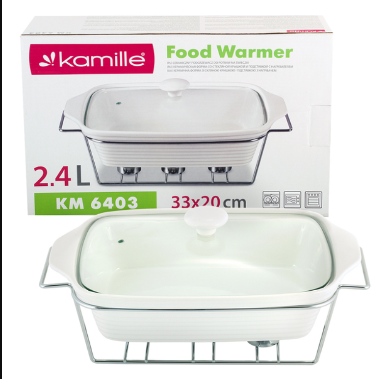 Керамічний мармит Kamille — чудовий прилад для подачі гарячих других страв. Він виготовлений з високоякісних матеріалів з використанням сучасних технологій виробництва. Керамічна форма з кришкою підходить для використання в духових і мікрохвильових печах, а в комплекті з нею йде зручна металева підставка з підсвічником для підігріву страв. Такий керамічний мармит з підставкою має привабливий зовнішній вигляд і дуже зручний у використанні, завдяки чому він неодмінно прикрасить ваш святковий стіл.