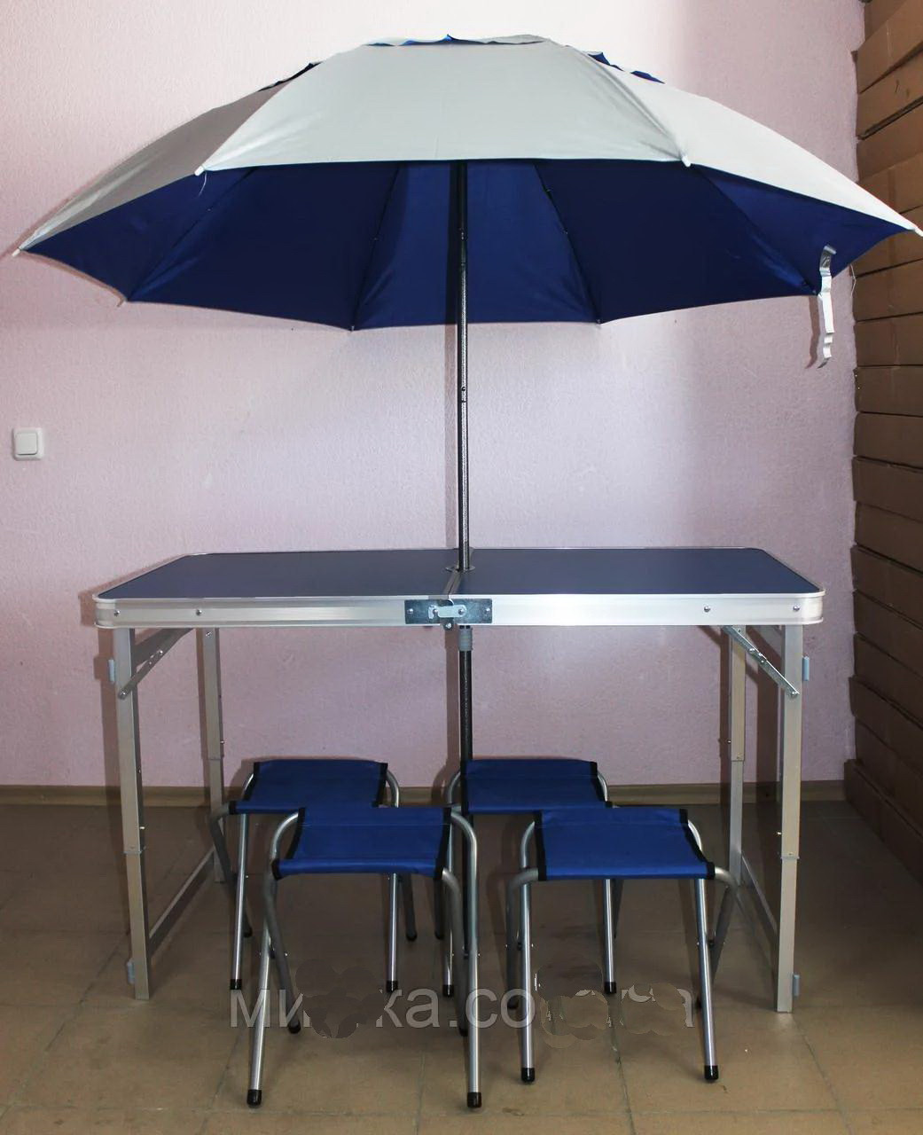 Комплект для пікніку: стіл, парасоля і 4 стільця синій