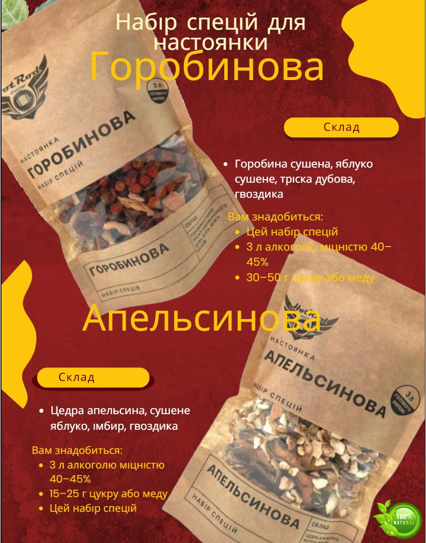 Каждая смесь - это тщательно подобранное сочетание натуральных специй, трав, ягод и цедры, что позволяет получить глубокий вкус, насыщенный аромат и аутентичный характер напитка. Вы сами контролируете процесс – прочность, сладость и насыщенность.