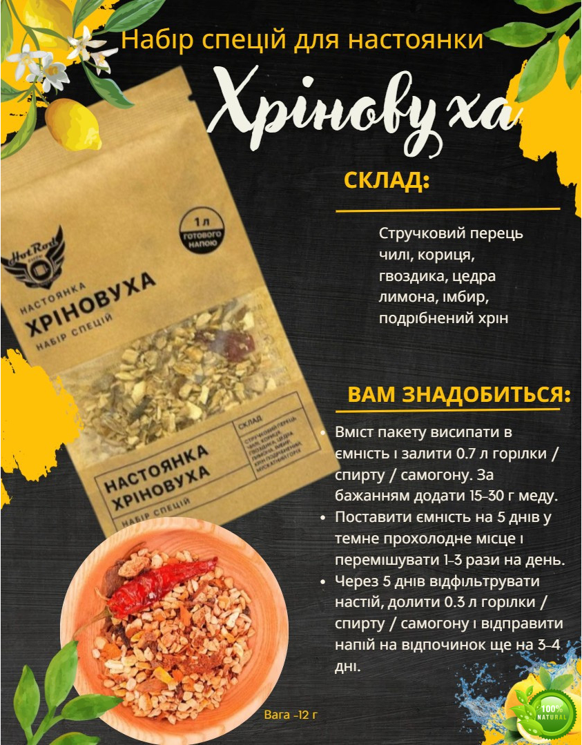 В наборе собраны 5 тщательно подобранных смесей специй, трав и натуральных ингредиентов, которые позволяют приготовить до 5 литров насыщенных настоек. Просто добавьте основу (крепкие напитки) — и получите напиток с глубоким вкусом, богатым ароматом и характером.