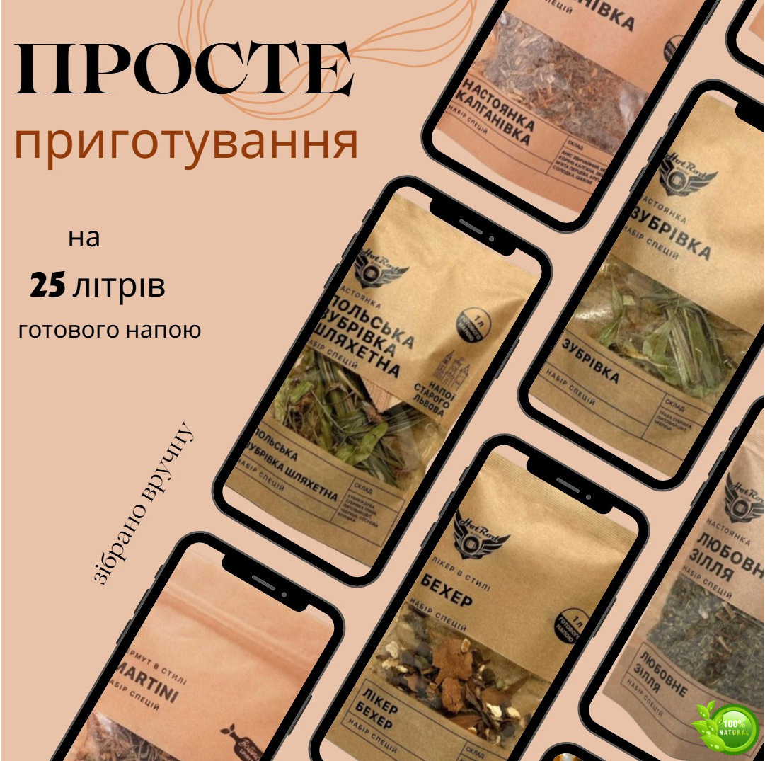 Кожен пакет — це окрема історія смаку: від класичних трав'яних настоянок до складніших бітерів і авторських міксів. Ви зможете експериментувати з міцністю, насиченістю й часом настоювання, створюючи власні унікальні рецепти.